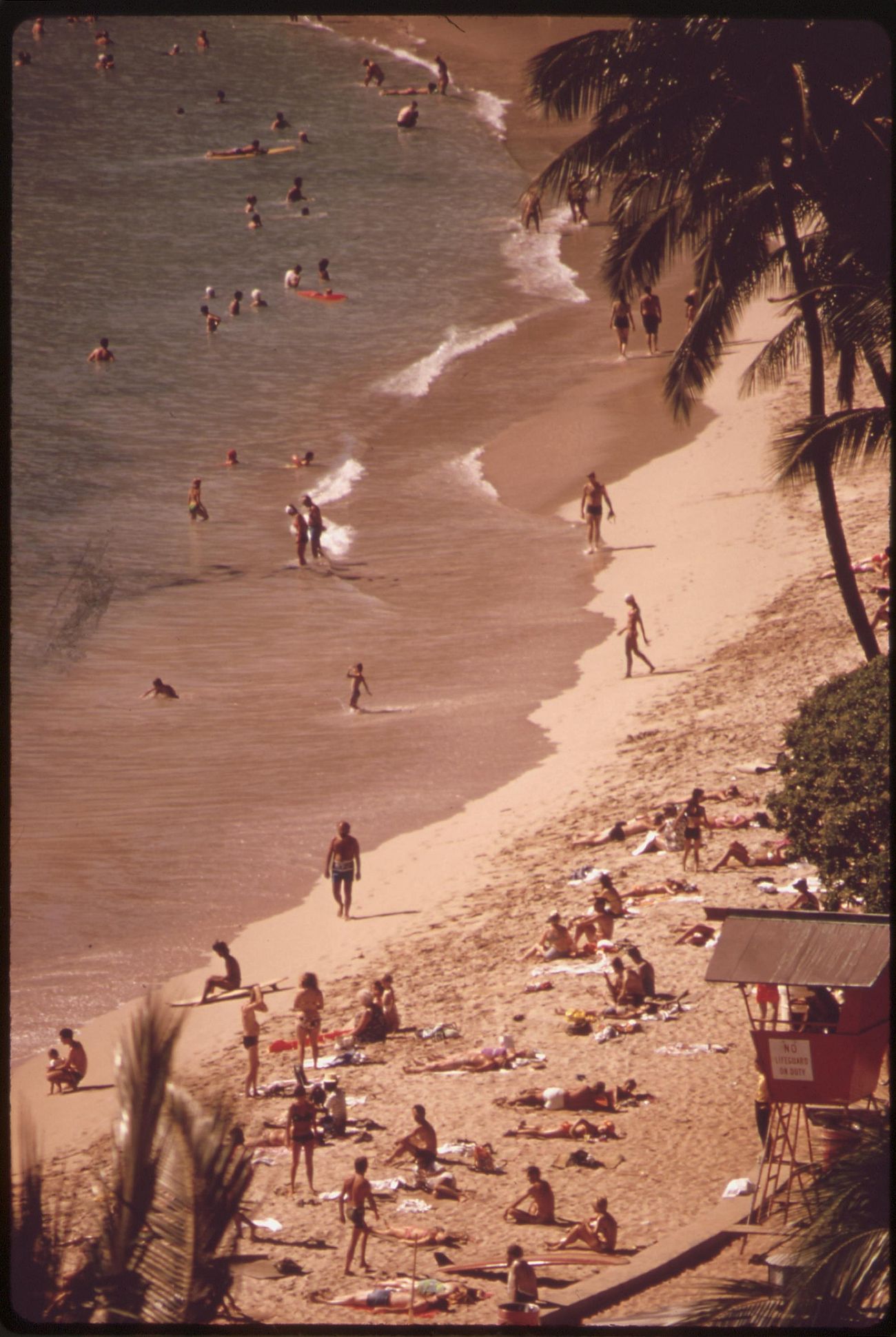 In the beginning… there was the ocean at Waikīkī. Then in 1970, Jim Cotton put on the first rather primitive Waikīkī Roughwater Swim–about 35 local swimmers showed up. This led to the second roughwater swim, and around 100 people attended. The fast growth indicated that this was an event whose time had come. Jim sent out a proposal to form a beach swimming club to all who participated in the second swim, and voila: the Waikīkī Swim Club (WSC) was born. You can see the original members list pdf). Natalie Naugle Mahoney and Bobbie Jennings, both still with us at this writing (2012), were major contributors to the start-up with their energy and public relations skills. Jim Welch was the “poster adult” of the Club with his fast times, good looks, personality, and leadership. He became President after Cotton. By 1972/73, the Maui Channel Swim and a long course pool meet were added, making Labor Day Weekend a tri-event for the many robust Californians who reveled in the idea of coming to Hawaii for massive amounts of swimming.